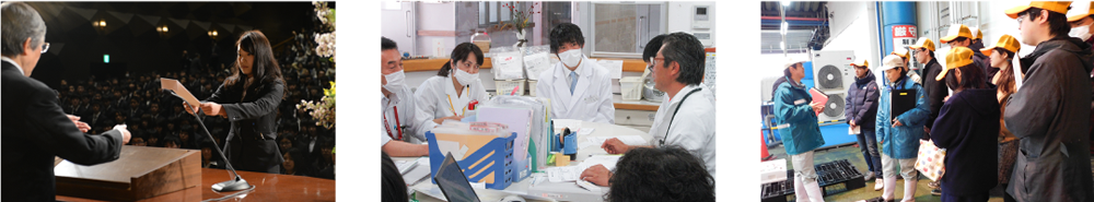 | 1年次 | 教養や基礎医学の勉学に励む日々。一方、病院見学や患者介護等の体験学習が早くもスタート。原子力発電所、原発事故被災地や、産業衛生、衛生行政、疫学研究等、地域での生活に密着した現場へも出向き見学しました。 |