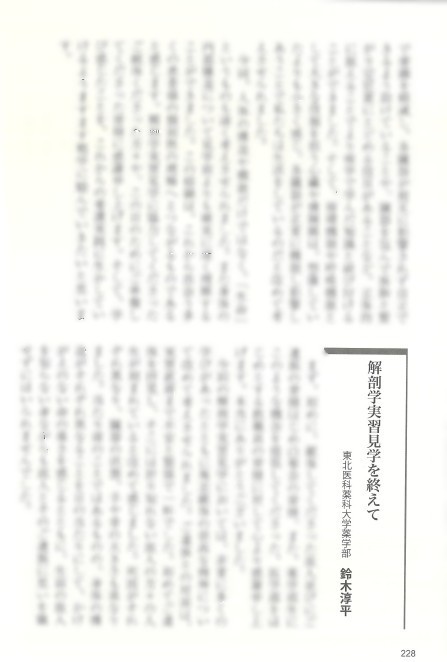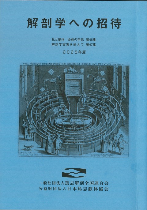 「解剖学への招待」は、一般社団法人篤志解剖全国連合会が編集し、公益財団法人日本篤志献体協会が発行した文集であり、献体の尊い意義と篤志献体団体である白菊会の深い思いが丁寧に綴られています。献体に支えられ、医学生・歯学生は解剖学を学び、また研究を進めています。本学では、医学部と薬学部が連携した教育体制のもと、薬学生も「解剖学実習見学」を行い、医療人としての倫理観を養うと共に、責任を意識する機会にしています。本書には、全国の医学部・歯学部の学生も実習を終えての感想や思いを寄せていますが、本学薬学部の鈴木淳平さんの寄稿も掲載されています。全国で薬学部生が寄稿しているのは本学のみです。臨床を見据えた学びを重視する本学の教育の一端として、ご紹介させていただきます。