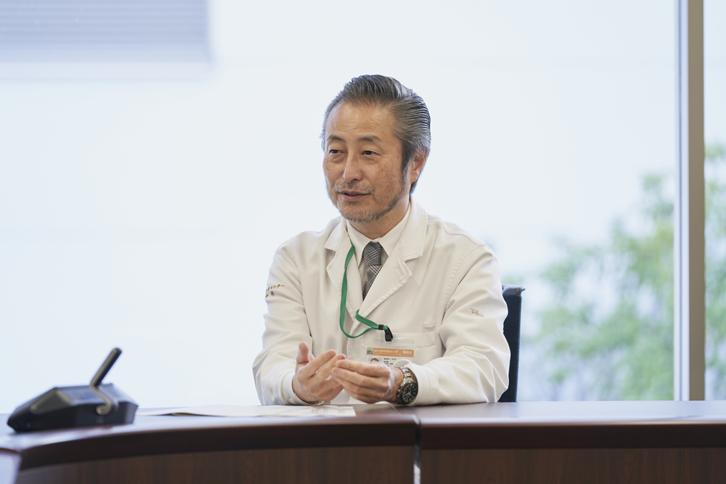 医学部医学科に在籍する学生の最大の目標である医師国家試験を突破するためには、1年次から6年次までの進級をストレートに達成していくことが重要です。1年次からひとつひとつの知識や経験を積み上げ、積み上げたものをさらなる年次の礎として理解を深めていくことで、付け焼刃では突破できない国家試験への大きな力になる。目に見える点数だけに限ったことではありません。授業や試験、更には臨床実習に取り組む姿勢や望ましい人間性などが身についていてこそ進級が適うわけですから、我々教員は日ごろから学生と相対し、話し合い、サポートすることを業務としています。