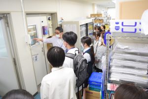 今年はじめて病院薬剤部ツアーを開催しました。普段入ることが出来ないスペースで病院薬剤師の仕事について詳しく説明がありました。