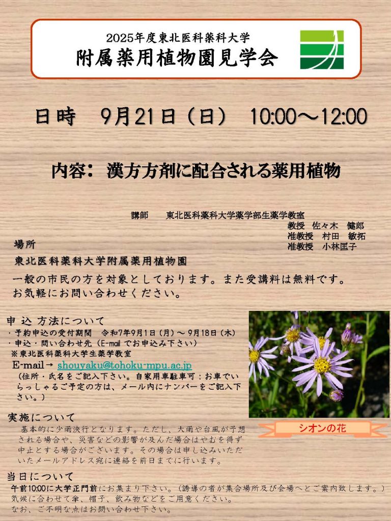 2025年度秋の東北医科薬科大学附属薬用植物園見学会のお知らせ