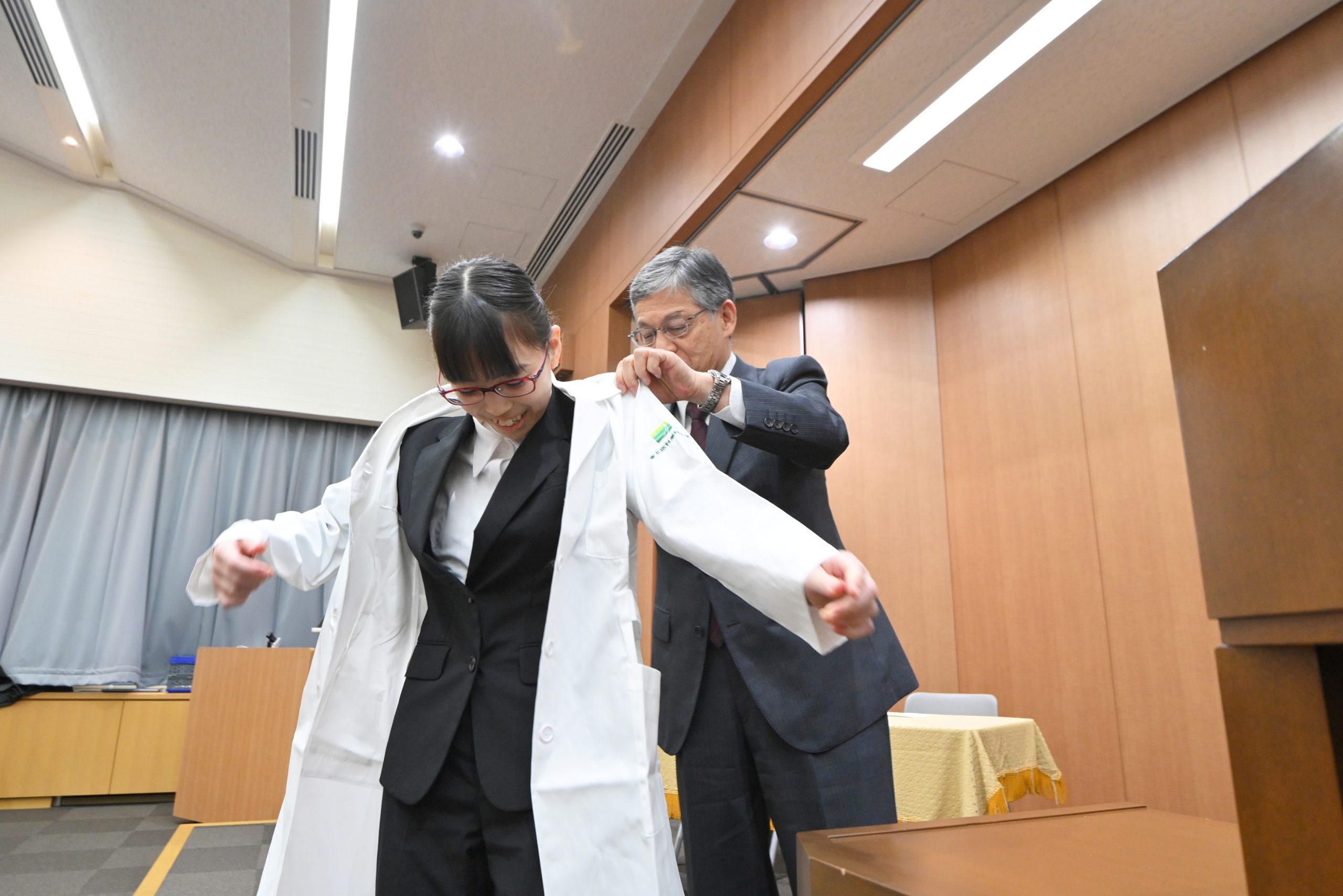「薬局や病院での実習に臨む学生に白衣授与式「一つでも多い選択肢を与えられる薬剤師に」」