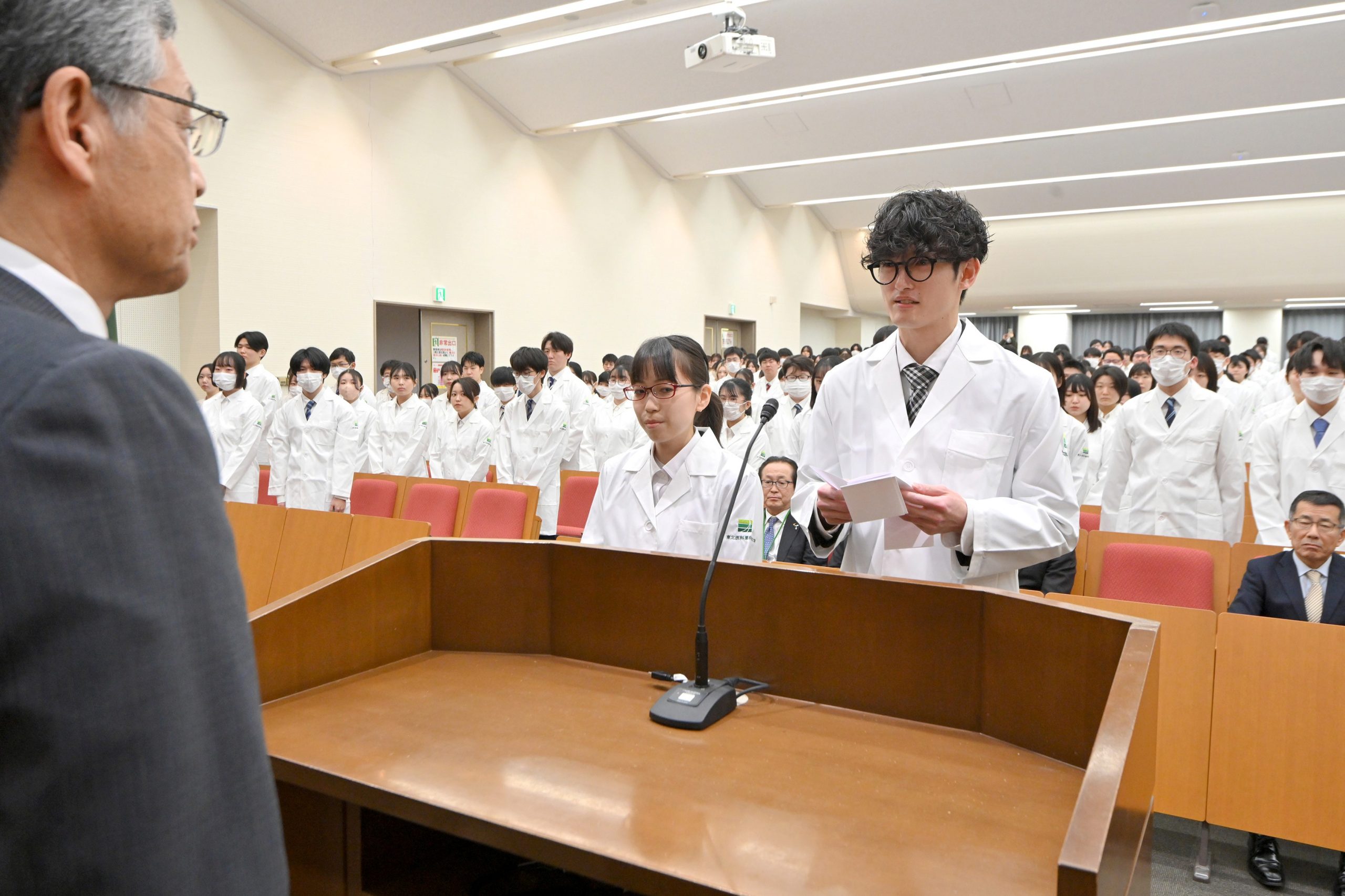 「実務実習を前に白衣授与式 東北医科薬科大学薬学部の4年生」