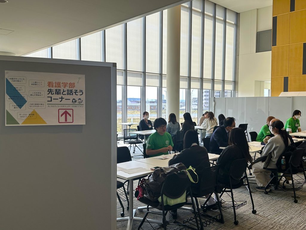 「附属病院見学ツアー」や「看護学部概要説明、入試動向説明会」を複数回実施し、希望者には「個別相談コーナー」にて本学附属病院の看護師、また在学生や教員と、学生生活や入試に向けた勉強方法などをお話しいただきました。