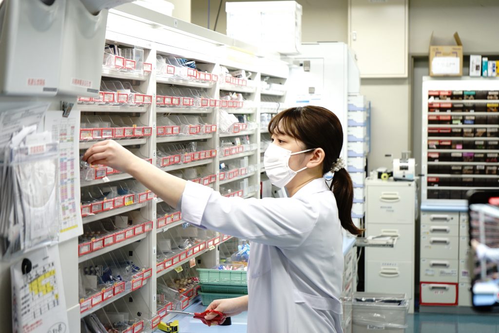 本学の附属病院では、毎年300名以上の看護学生が実習を行っており、今回の見学ツアーでは、その病院の中を実際に見て回ることができるほか、看護学部学生が利用する教育研究棟の一部もご覧いただけます。また、40名以上の薬剤師が働く病院薬剤部の仕事の裏側を特別にお見せします。