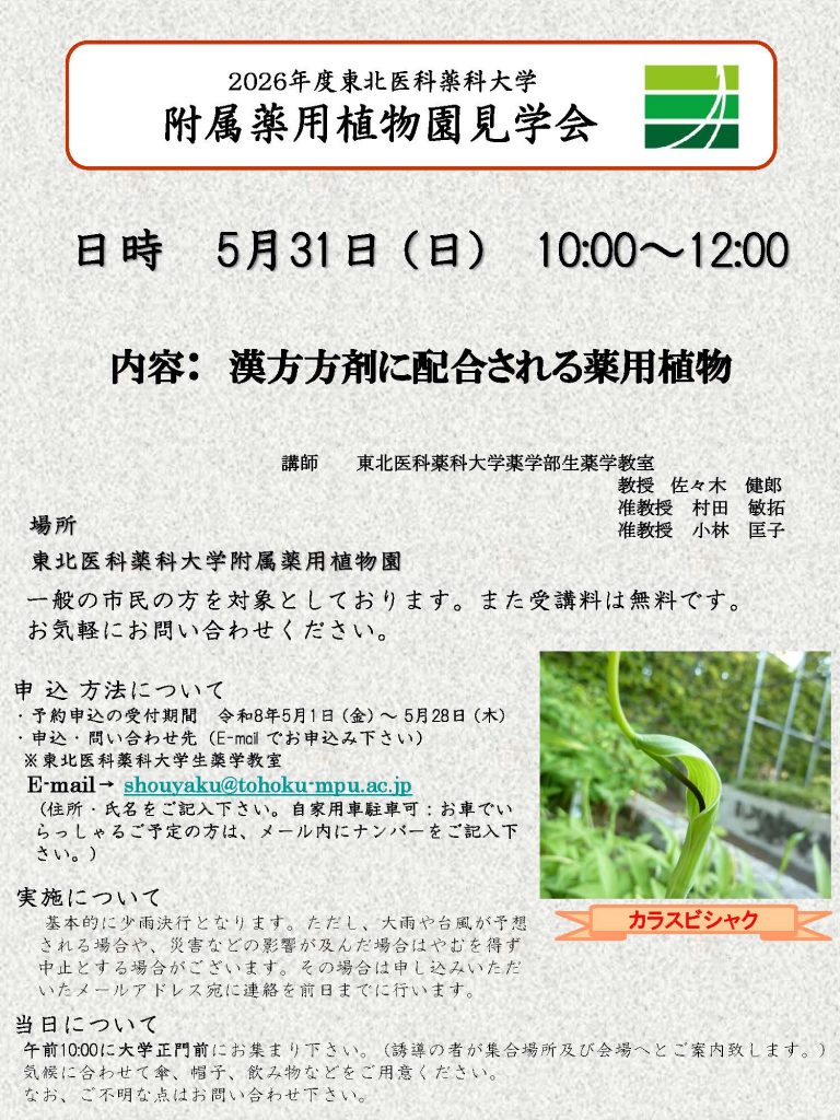 2026年度春の東北医科薬科大学附属薬用植物園見学会のお知らせ
