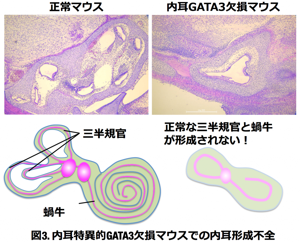 ● 遺伝性感音難聴で変異がみつかった遺伝子が、正常な三半規管と蝸牛の形成に必須であることを