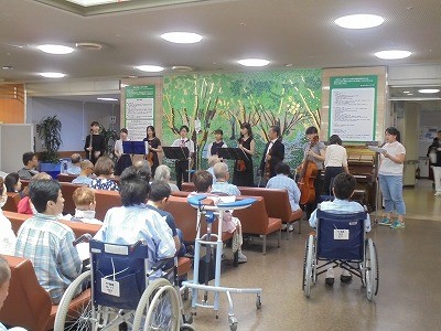 7月20日土曜日 午後2時から、東北医科薬科大学病院 環境改善委員会の準備の元、東北医科薬科大病院1階ホールにて、東北医科薬科大学医学部の学生と指導教員によるサマーコンサートが開催されました。「明日があるさ」、「上を向いて歩こう」などの坂本九メドレーを中心に、「川の流れのように」、「アベマリア」などの御馴染みの曲目で構成されました。入院患者さんやその御家族・関係の方々を中心に、多数の聴衆に集まって頂きました。そして、会場は和やかな雰囲気に包まれ、終了後は、自然とアンコールの御声援が起こるなど、盛会のうちに終了しました。次回は、12月21日土曜日 午後1時からクリスマスコンサートを予定しておりますので、皆さまご参加の程、お願い申し上げます。