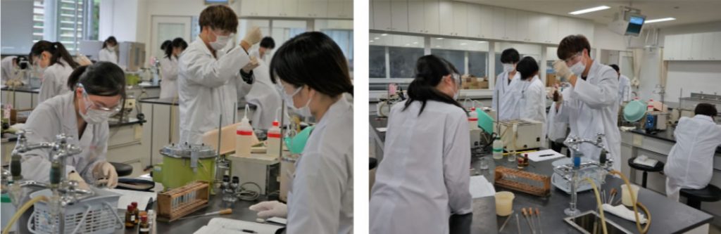 基礎実習Ⅱ<化学系>の様子です。 <2020.10.7撮影>
