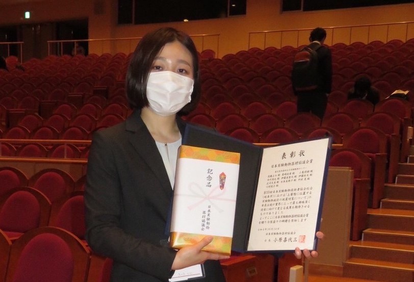 令和4年10月14日(金)に、長野県松本市で開催された第56回日本実験動物技術者協会総会において、第25回業界アワード「日本実験動物器材協議会賞」を、実験動物センター(福室キャンパス福室動物室)の髙橋まみ嘱託職員が受賞しました。