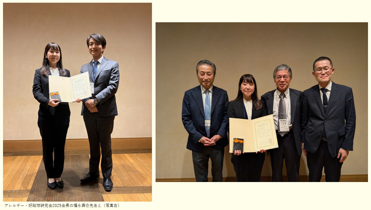 2025年11月29日(土)~30日(日)に慶應義塾大学三田キャンパスで開催されたアレルギー・好酸球研究会2025 /第34回国際喘息学会日本・北アジア部会合同大会において、医学教育推進センターの豊島かおる助教がYoung investigator award(YIA賞)を受賞しました。